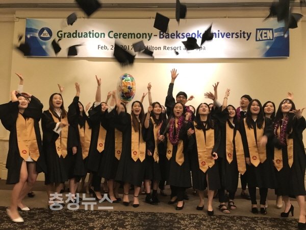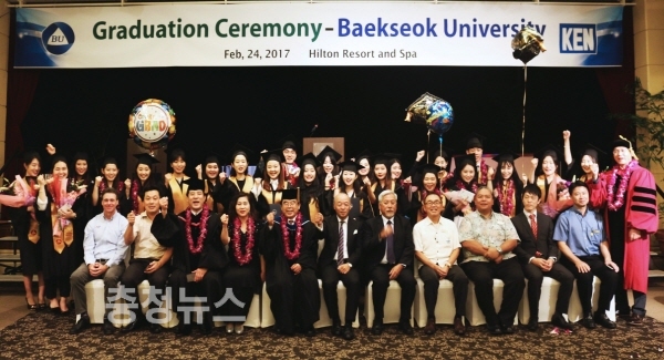 24일 괌 힐튼호텔에서 개최된 ‘백석대학교 2016학년도 전기 학위수여식’에는 괌과 사이판 현지에 취업해 일하고 있는 백석대학교의 졸업생 24명이 참석했다.