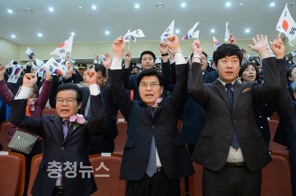 이춘희 세종시장, 고준일 세종시의회 의장 등 만세삼창
