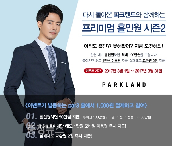㈜골프존이 오는 3월 31일까지 ‘파크랜드와 함께하는 프리미엄 홀인원 시즌2’ 이벤트를 진행한다.
