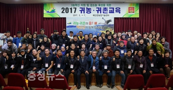 충남 예산군 농업기술센터는 지난 2일 기술센터 교육관에서 2017년 귀농·귀촌 교육 개강식을 개최하고 본격적인 교육을 시작했다고 3일 밝혔다.