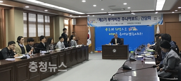 충남 부여군 이용우 군수는 지난 2일 ‘제3기 부여비전 주니어보드’ 간담회를 열었다.