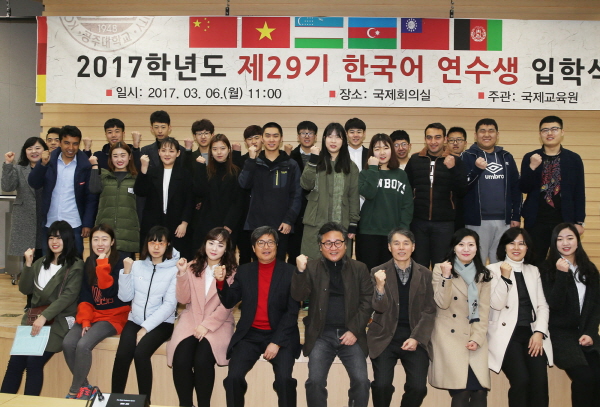 공주대학교 국제교육원(원장 박휴버트)은 6일 오전 국제회의실에서 박휴버트 국제교육원장을 비롯한 관계자, 한국어 연수생 25명 등이 참석한 가운데 제29기 한국어 연수생 입학식 행사를 가졌다.