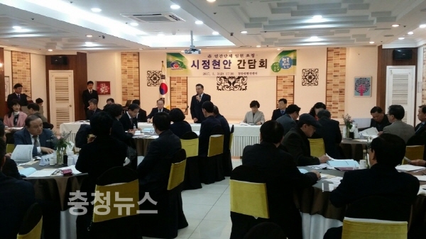 충남 천안시는 이·통장협의회, 주민자치, 민주평통, 새마을회 등 지역내 18개 민간단체 임원들이 참석한 가운데 시정현안 간담회를 가졌다고 8일 밝혔다.