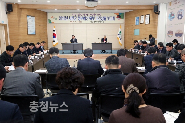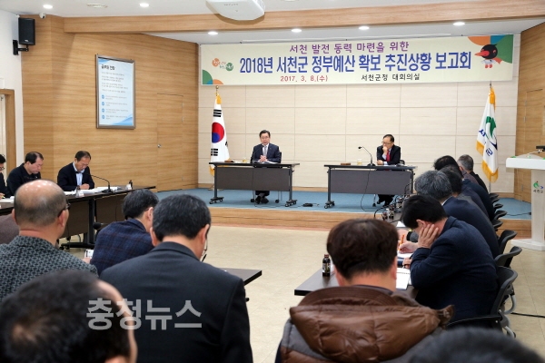 충남 서천군 노박래 군수는 8일 지역 발전 동력 마련을 위한 2018년 정부예산 확보 추진상황 보고회를 가졌다.