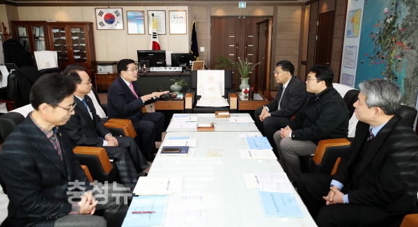 군은 지난 7일 군수실에서 한상기 군수와 군 관계자, 충남연구원 관계자 등 12명이 참석한 가운데 대선공약과제의 내실 있는 발굴을 위한 ‘충남연구원 정책간담회’를 갖고 군과 충남연구원 태안군 정책협력단 간 협력방안을 논의했다고 밝혔다.