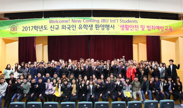 중부대학교(총장 홍승용)가 8일 오전 충청캠퍼스 건원관 금산홀에서 홍승용 총장을 비롯해 국제교류센터 관계자, 유학생 등 150여 명이 참석한 가운데 2017학년도 신규 외국인 유학생 오리엔테이션을 개최했다고 밝혔다.