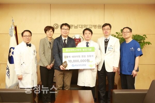 충남대학교병원(원장 송민호)은 장동석 내과의원의 장동석 원장이 충남대학교병원 발전기금(신장내과 기금)으로 일천만원을 기부했다고 밝혔다.