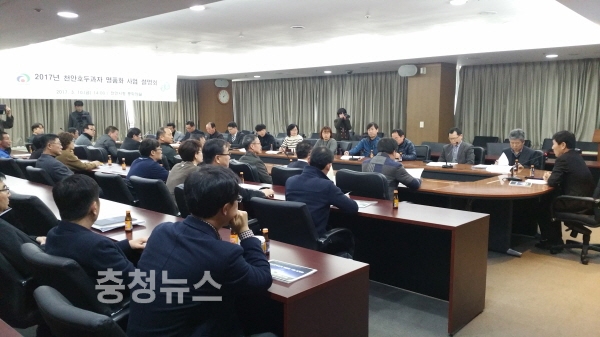 이날 설명회에는 우리밀영농조합법인, 황금들녘팥영농조합법인 농가와 호두과자 업체, 지역농협, 관련 부서 관계자 등 60여명이 참석해 천안호두과자 명품화 추진을 위한 사업계획과 구체적인 방안을 논의했다.