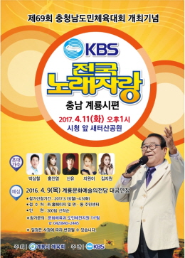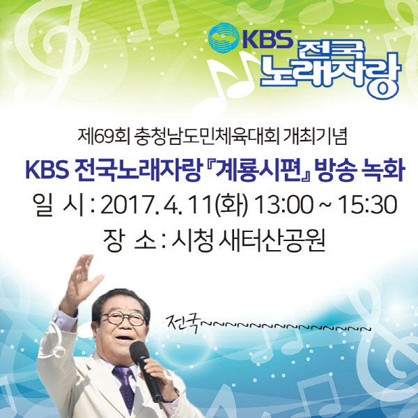 한편, 인기 가수 박상철, 홍진영, 신유, 지원이, 김지원이 출연하는 KBS 전국노래자랑 계룡시편은 오는 4월 중 KBS1 TV를 통해 전국에 방영될 예정이다.