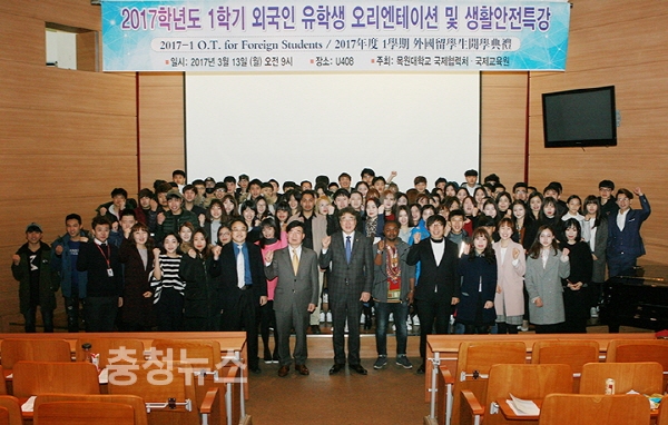 충남 목원대학교(총장 박노권)는 13일 사범관에서 총장을 비롯 국제협력처 교직원과 외국인 유학생 등 150여명이 참석한 가운데 2017학년도 1학기 외국인 유학생 입학식 및 오리엔테이션, 생활안전특강 프로그램을 잇따라 개최했다.