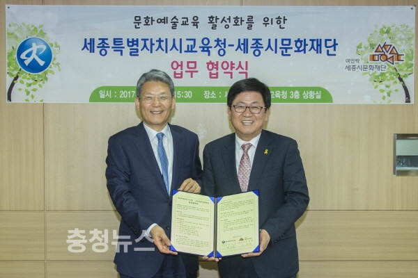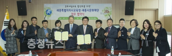 13일 교육청 상황실에서 세종시문화재단(대표이사 인병택))과 문화예술교육 상생발전을 위한 업무협약(MOU)을 체결했다