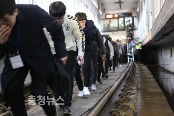 공사는 14일 시민 50여명이 참여한 가운데 판암역~서대전네거리역 구간에서 안전체험 열차를 운행하여 출입문 비상 개방 탈출, 열차내 화재 진압 등 다양한 비상상황에 대한 안전체험 행사를 가졌다.