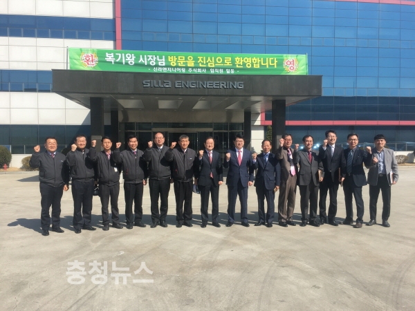 복기왕 아산시장이 지난 3월 14일 아산시 아산테크노밸리 내에 위치한 신라엔지니어링㈜(대표 신용문)을 방문해 기업관계자 및 근로자들을 격려하고 기업애로사항을 청취하는 등 기업과 소통하는 시간을 가졌다.