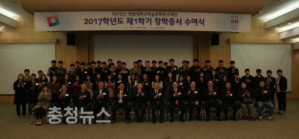 장학증서를 전달한 윤용순 대표는 “장학증서를 받는 한밭대 학생들을 보니 마음이 든든하고 행복하다. 학생들을 통해 우리의 미래가 더욱 발전할 것이라고 믿는다”고 소감을 밝혔다.