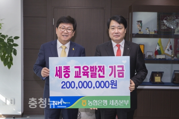 2014년 11월 체결한 양 기관의 교육금고 약정에 따라 농협이 세종시 인재육성 장학금 지원, 다문화 가정 지원사업 등을 위해 세종시교육청에 매년 2억씩 납부하는 기금으로 세종시교육청은 이를 활용해 매년 장학금 지원 등 학생 복지증진을 위해 사용하고 있다.