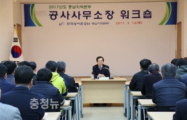 김병찬 충남지역본부장은 특별강의를 통해 “공사사무소장 워크숍을 통해 담당자 업무능력 향상은 물론 청렴하고 안전한 현장문화 정착을 위해 노력하기 바란다”며 “ 특히 해빙기를 맞아 시설물 안전점검에 더욱 주의를 당부하고 본격적인 영농기에 대비해 주요공정의 철저한 사전점검 등 현장관리에 최선을 다해달라”고 말했다.