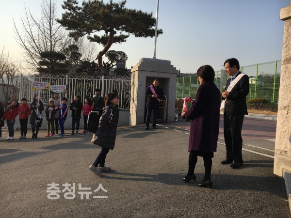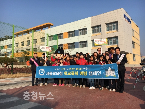 부강초는 그 일환으로 17일 학교 정문에서 민방식 교장을 비롯한 교직원, 세종시교육청 김태환 학생생활안전과장 등 시교육청 직원들이 참석한 가운데 안전하고 행복한 등굣길을 조성하고 학교폭력 근절을 위한 학교폭력 예방 캠페인을 실시했다.