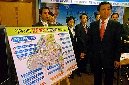 .25 대전 서구을 국회의원 보궐선거에 출마하는 한나라당 이재선 예비후보는 4일 오후, 선거사무소에서 기자회견을 열고 젊은 일꾼 강한 대전 프로젝트인 정권교체, 도청 이전에 따른 대전 경제 활성화, 선진복지도시, 일류서구 건설에 중점을 둔 4대 비전, 26대 공약을 발표했다.