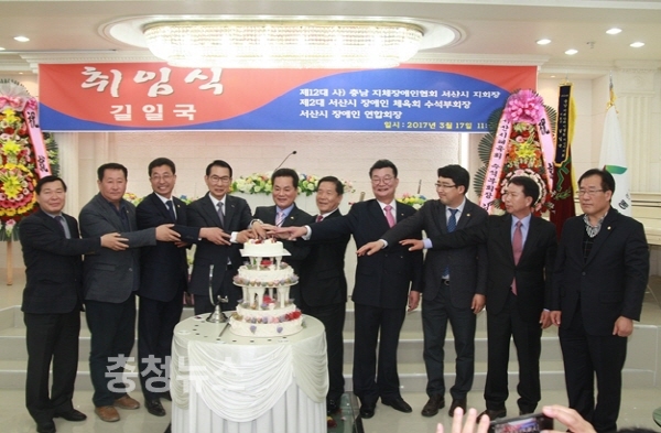 취임식에는 이완섭(서산시장), 우종재(서산시의회 의장), 성일종(국회의원), 이건휘(충청남도지체장애인협회장)을 비롯한 지역인사 및 장애인가족 500여명이 참석한 가운데 성대히 취임식이 진행되었다.