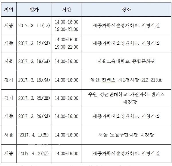 다음달 2일까지 서울, 일산, 수원 등에서 총 8회에 걸쳐 실시