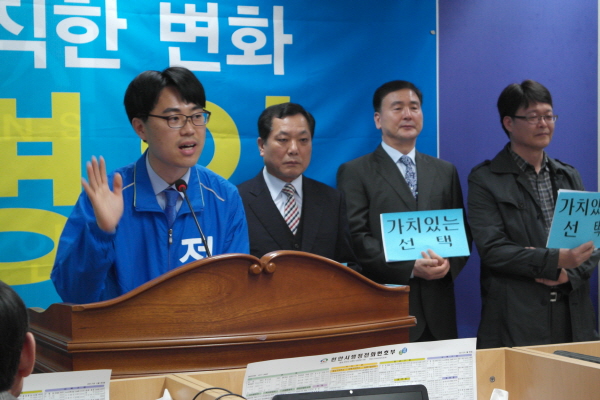 정 후보는 20일 오전 천안시청 브리핑실에서 기자회견을 열고 천안시바선거구 출마를 결심했다고 밝혔다.