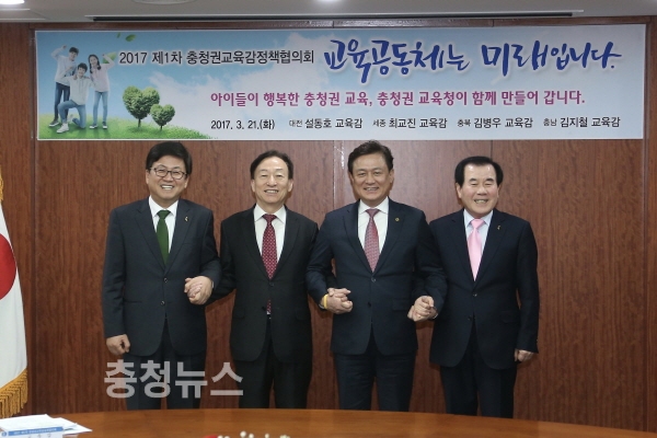 충청권 4개 교육청 교육감은 21일 대전광역시교육청에서 정책공유․연구․협력을 통해 미래사회에 능동적으로 대비하는 충청권 교육을 위해 힘쓰자는데 뜻을 모았다.