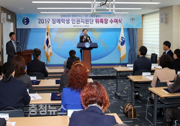대전시교육청(교육감 설동호)은 21일 대전시교육청 브리핑룸에서 ‘2017년 장애학생 인권지원단 위촉장 수여식’을 개최했다.