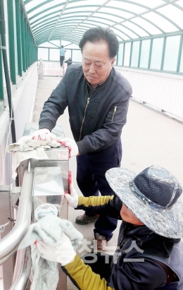 22일 서산시 석남동의 한 육교에서 만난 배순모(59·사진)씨 손에 평소와 달리 빗자루와 마른 수건이 들려있었다.