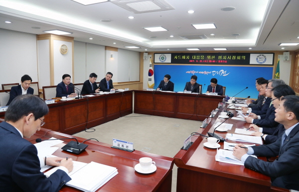 권선택 대전시장이 22일 시청 중회의실에서 김경용 한국무역협회 대전충남본부장, 선승훈 선병원 의료원장 등 관련 업계 관계자들이 참석한 가운데 중국의 사드보복 조치에 따른 지역 업계의 피해 상황 점검과 향후 대응전략 논의를 위한 협치 시정회의를 개최했다.