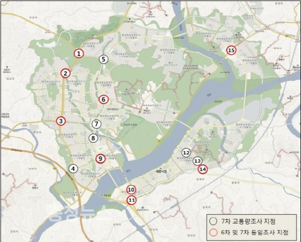 행정중심복합도시건설청(청장 이충재)과 한국토지주택공사 세종특별본부(본부장 조성순)는 행정중심복합도시 내에서 실시한 7차 교통량 조사 결과를 발표하였다.
