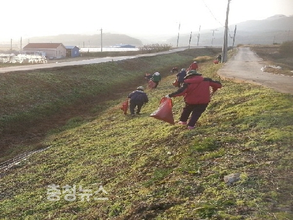마을별로 실시한 이번 국토대청결운동은 갑자기 찾아온 꽃샘추위에도 불구하고 300여명이 참여하여 폐비닐, 스티로폼, 페트병 등 생활주변에 어지럽게 흩어져 있는 폐기물을 말끔하게 정리했다.