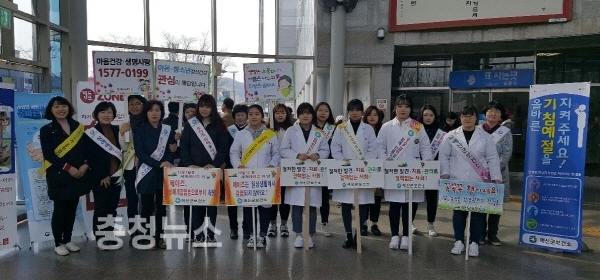 충남 예산군 보건소는 23일 예산역과 역전시장 일대에서 ‘제7회 결핵예방의 날’을 맞아 결핵예방 캠페인을 실시했다.