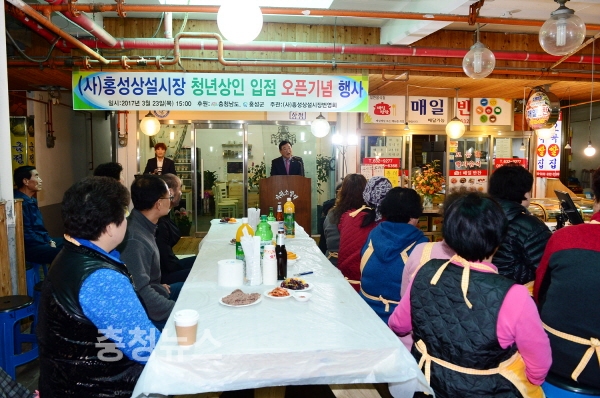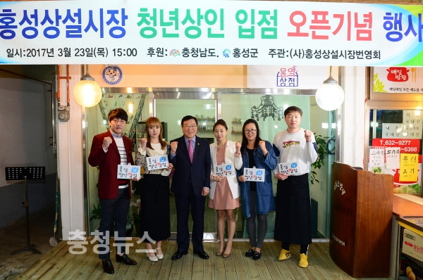 충남 홍성군은 23일 상설 시장에서 전통시장 활성화와 청년 일자리 창출을 위해 청년상인 오픈식을 개최했다.