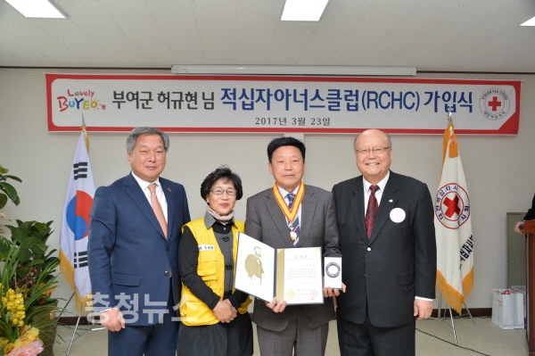 충남 부여군은 지난 23일 대한적십자사봉사회 부여지구협의회 사무실에서 가나상사 허규현(69) 대표의 ‘적십자 아너스클럽’ 가입식이 개최됐다고 밝혔다.