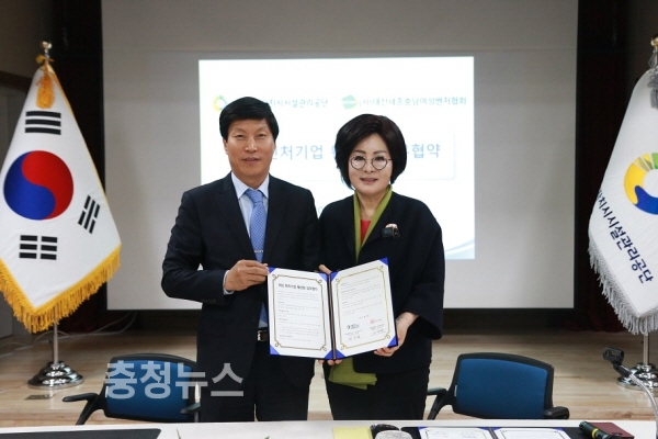 세종시설공단(이사장 신인섭)은 지난 23일 대전충남세종 여성벤처협회와 여성벤처기업 활성화 및 세종고용복지+센터 입주 유치를 위한 업무협약을 체결했다.