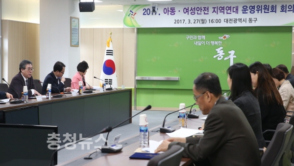 대전 동구(구청장 한현택)는 아동과 여성들을 폭력으로부터 보호하고 안심하고 활동할 수 있는 안전한 지역사회 구축을 위해 27일 소회의실에서 “2017년 아동여성안전 지역연대 운영위원회”를 개최했다고 밝혔다.