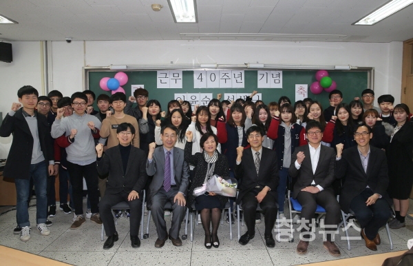 이 소식을 전해들은 수학교육과 학생들은 이 주무관의 근무 40주년이 되는 27일을 기념하고 감사하는 자리를 마련하기 위하여 수학교육과 강의실에서로 깜짝 기념행사를 기획하게 된 것이다. 이 날 11시 30분, 예기치 않은 기념행사의 주인공이 된 이주무관은 재학생들에게 꽃다발과 축하 케이크를 받으며 눈물로 감사의 말을 전했다.