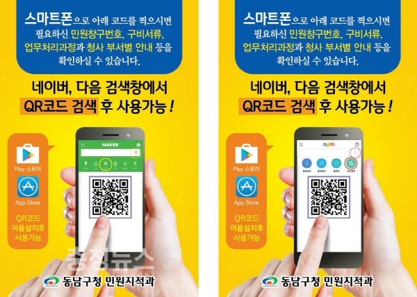 충남 천안시 동남구는 민원인의 편의를 위해 QR코드를 이용한 250종의 민원안내서비스를 27일부터 본격 시행했다.