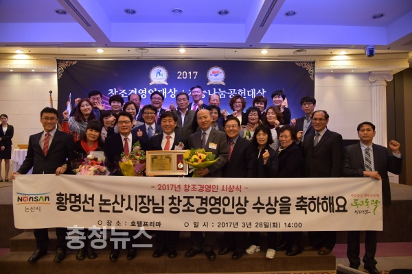 황명선 논산시장이 창조적이고 혁신적인 지방자치 경영으로 ‘2017 창조경영인 대상’을 수상했다.