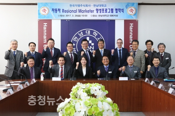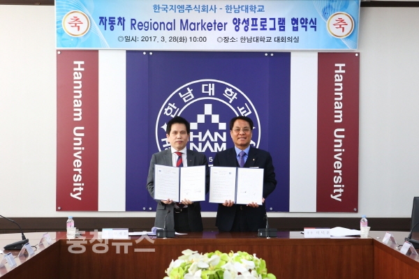한남대(총장 이덕훈)는 28일 한국지엠(주)과 ‘자동차 지역 마케터(Regional Marketer) 양성프로그램 협약식’을 가졌다.