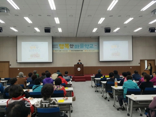 시는 29일 성거읍 삼곡리 한국농기계글로벌센터에서 각 읍·면 마을주민 100여명이 모인 가운데 ‘2017 제1기 행복한 마을학교’ 입교식을 열었다.