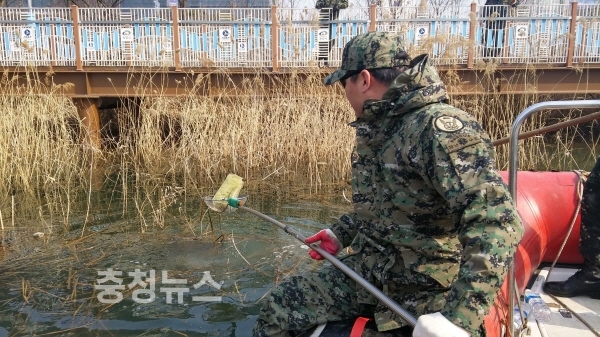 충남 천안시는 쾌적한 공원 이용 환경 조성을 위해 천호지 공원과 청수2공원의 호수 내 오물수거 작업을 실시했다.