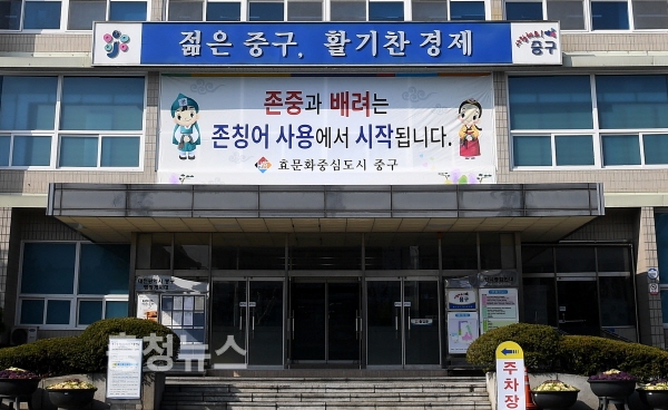 대전 중구(구청장 박용갑)는 지난해부터 구청사 현관 상단의 유휴공간을 활용해 캠페인 문구를 비롯한 밝은 사회를 만드는데 서로 공감하는 ‘희망 글’을 게시해 오고 있다.