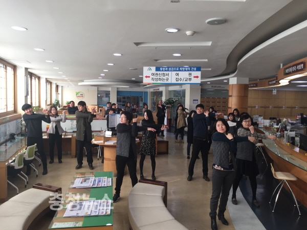 첫 실천릴레이 부서인 민원지적과에서는 ▲공통과제인 일어서서 인사하기에 대해 민원인 방문시 발딱 일어서서 인사하기 ▲친절한 민원응대 및 담당자 앞까지 직접 안내하기 ▲부서과제를 발딱행정 실천분위기로 선정해 매일 아침 근무시작 전에 발딱 친절체조 실시 ▲금주의 발딱행정 행동규칙 밴드 게시 등을 실시하고 있다.