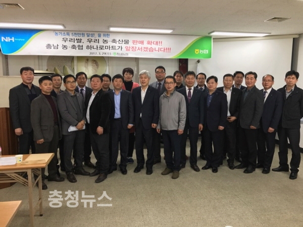 충남농협 선도하나로마트협의회(협의회장 정인택)는 29일 논산계룡농협 회의실에서 2017년 정기총회를 개최하고 하나로마트 협의회원 및 농업인생산기업 대표 등 40여명은 충남관내에서 생산되는 쌀 및 농축산물 판매확대로 농업인은 물론 소비자 실익증대를 위해 노력하기로 결의했다.