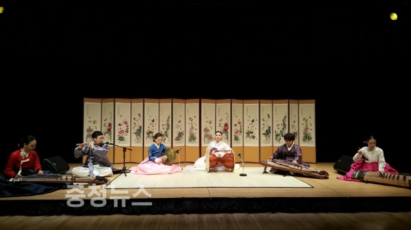 민속악의 대표곡 산조합주로 문을 연 이날 공연은 소리북 산조 ▲ 거문고 신곡‘무영탑’ ▲ 피리 독주‘비상’ ▲ 가야금, 대금신곡‘강마을’ ▲ 판소리 홍보가 中‘제비노정기’로 마무리 됐다.