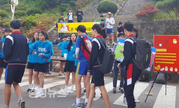 31일 군에 따르면 군청 직원과 청소년참여위원회원, 청소년상담복지센터 직원, 자모회원 등 20여 명이 참여하는 이번 캠페인은 수면 부족 등의 이유로 아침 결식 비율이 높은 청소년들에게 아침밥의 중요성을 일깨우면서 청소년기 건강한 식생활 습관을 가질 수 있도록 하기 위해 마련됐다.