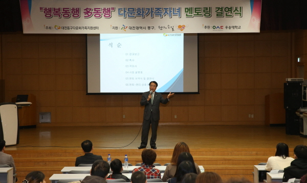 대전 동구(구청장 한현택)와 다문화가족지원센터(센터장 전기수)가 지난 31일 우송대에서 다문화 가족, 관계자 등 80여 명이 참석한 가운데 ‘행복동행 多동행’ 멘토·멘티 결연행사를 가졌다.