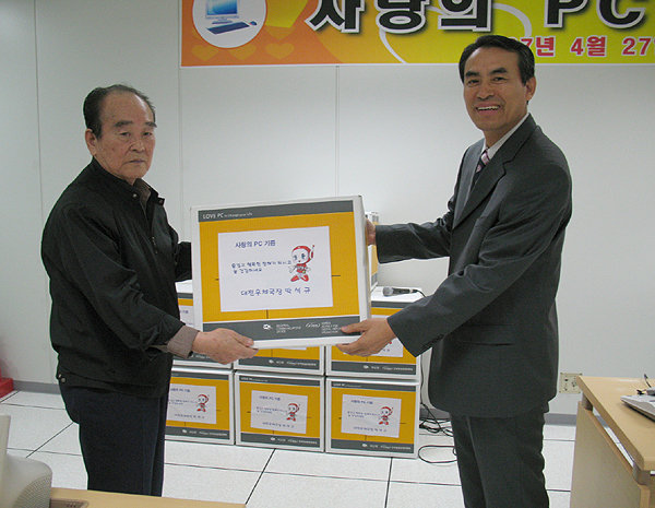 대전우체국(국장 박석규)은 4월 27일 4층 실버정보화교육장에서 “사랑의 PC 기증식” 행사를 가졌다.