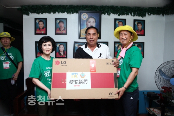 국제라이온스협회 356-B(대전)지구 송경자 총재를 비롯한 35명의 봉사단은 지난 3월 30일부터 4월 2일까지 3박 4일의 일정으로 자매지구인 301-D1(필리핀)지구 친선방문 및 봉사활동과 선교봉사단체인 구손평화봉사단 추천 수상가옥과 초등학교에 대한 뜻깊은 나눔봉사를 펼쳤다.